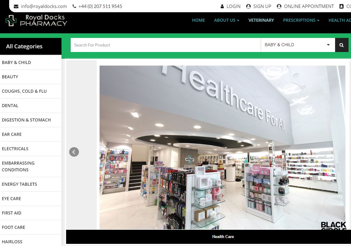 This ECommerce Web Application was build for RoyalDocks Pharmacy, UK.